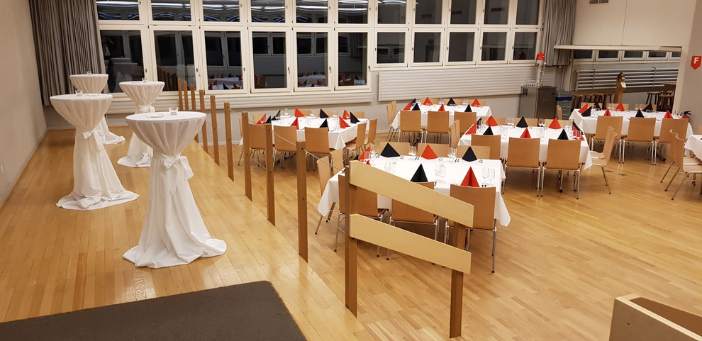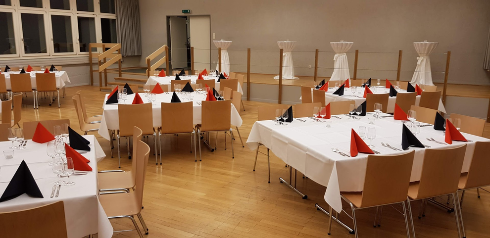 It also offers a small stage and a bistro directly adjacent to the hall for serving and catering. Access is barrier-free.