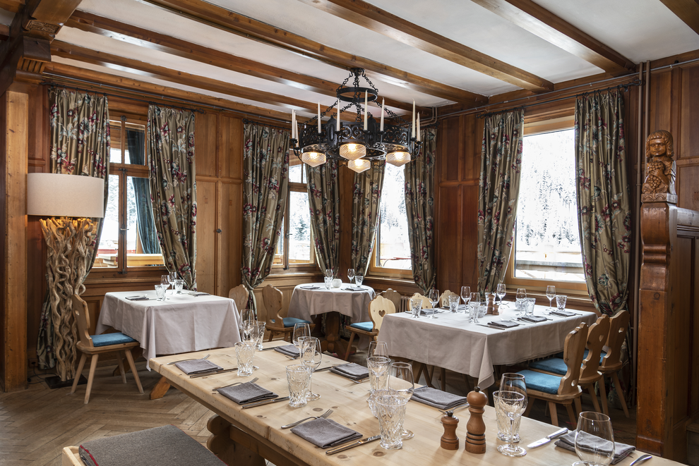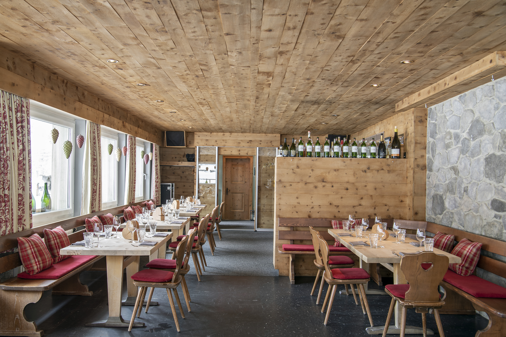 La salle de restaurant aux boiseries ainsi que la grande terrasse ensoleillée avec vue directe sur le lac offrent une ambiance alpine authentique. Parfait pour des réunions inspirantes ou des moments de détente en équipe. La cuisine est réputée pour ses spécialités régionales et ses plats frais de saison, qui sont servis dans le chalet confortable et rustique ou à l'extérieur, au bord du lac.