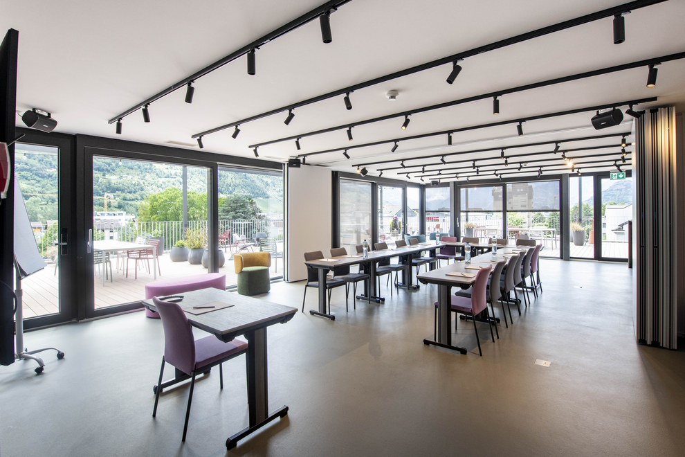 Au-delà des espaces de travail, le Moxy Sion se distingue par ses espaces communs animés, son design audacieux et son esprit ludique. Le hall central, véritable lieu de vie, favorise les échanges informels et prolonge naturellement les moments professionnels dans une ambiance conviviale, idéale pour les groupes et les équipes de travail.